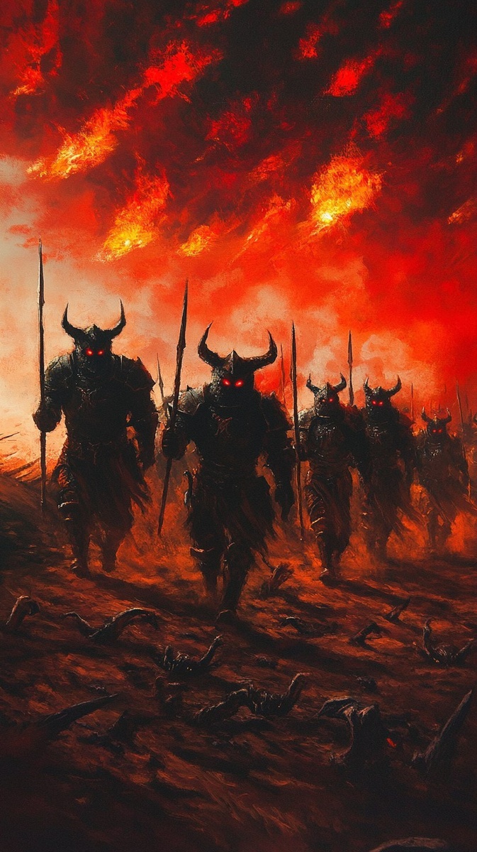 Создано на основе запроса: dark fantasy race, hulking warriors clad in rusted black iron, cracked horned helmets, glowing red eyes behind visors, marching through a battlefield of bones, burning skies, 1980s grim fantasy art style --- Автоперевод: Dark Fantasy Race, тяжелые воины, одетые в ржавичное черное железо, потрескавшие рогатые шлемы, светящиеся красные глаза за козел Как тебе эта генерация? 🤔 https://dzen.ru/id/65c0c65c86e4f837c27b24d7 #ИИ #AI #нейросеть #midjourney #art