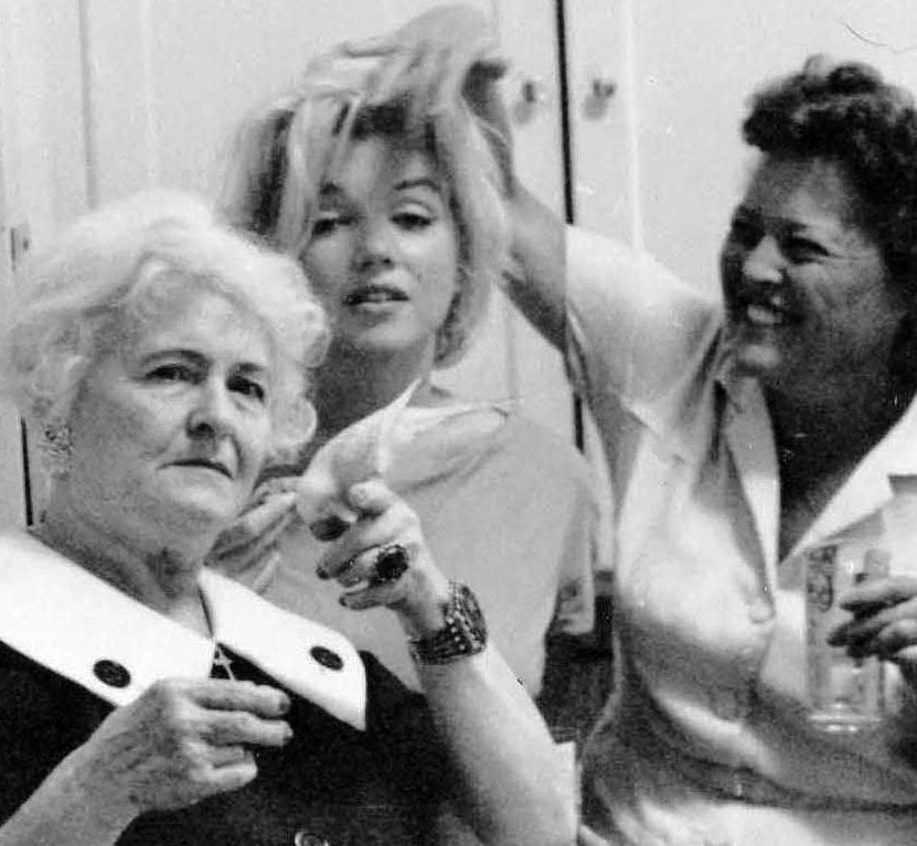 Женщина на первом плане рядом с Мэрилин- Энн-Мари. С ней связана одна история, которую сложно подтвердить или опровергнуть. Но! Ходят слухи) Энн-Мари и Норма Джин были знакомы с 1948 года. Тогда сын Энн-Мари, Фредерик Каргер был преподавателем пения и дикции, а Мэрилин ходила на его занятия.