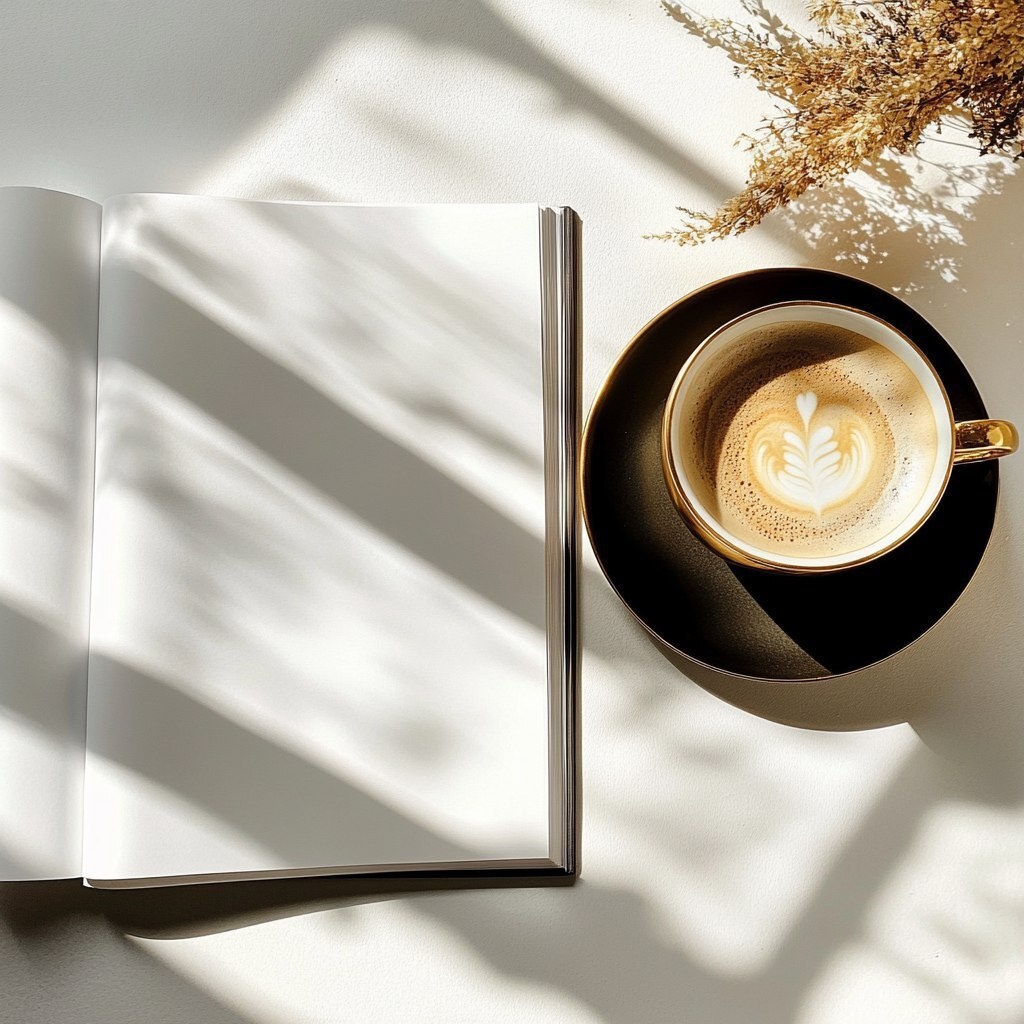Создано на основе запроса: top view blank white magazine cover on a white surface, gold tea cup with cappucino inside, bread rool in a black glossy small plate, nothing is touching the magazine, warm sunshine shadows, luury aesthetic --- Автоперевод: Вид на верхний вид белый журнал на белой поверхности, золотая чашка с капучино внутри, хлеб на черной глянцевой маленькой тарелке, ничто не касается журнала, теплые солнечные тени, эстетика тепло Как тебе эта иллюстрация? 🤔 https://dzen.ru/id/65c0c65c86e4f837c27b24d7 #ИИ #AI #нейросеть #midjourney #art