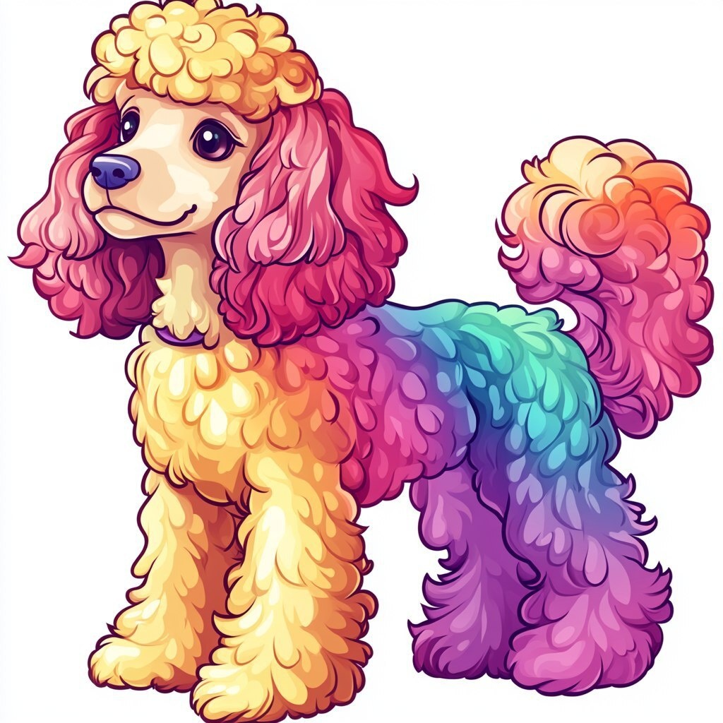 Создано на основе запроса: cute chibi of a very coloring rainbow standard poodle for a logo, cartoon style high quality