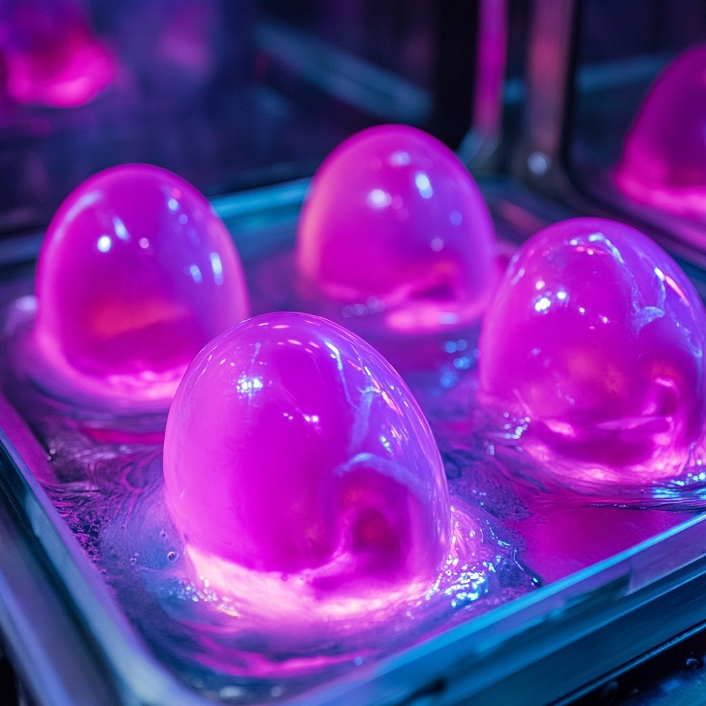 Создано на основе запроса: alien eggs in an incubator, slime, pink and purple and black colors