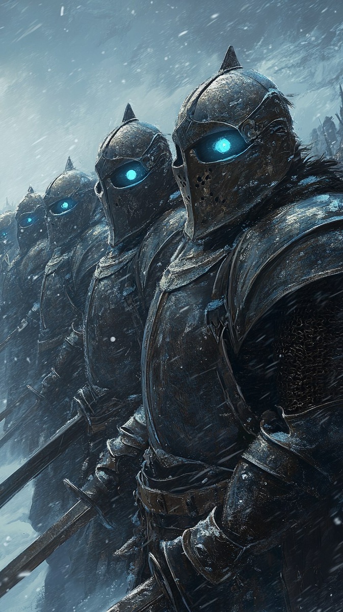 Создано на основе запроса: empty suits of armor filled with swirling black mist, glowing eyes inside rusted visors, ancient swords and shields marching endlessly across frostbitten plains --- Автоперевод: Пустые костюмы брони, наполненные кружащимся черным туманом, светящимися глазами внутри ржавых козырьков, древних мечей и щитов бесконечно маршируют через обморозненные равнины Красиво получилось? 🤔 https://dzen.ru/id/65c0c65c86e4f837c27b24d7 #ИИ #AI #нейросеть #midjourney #art