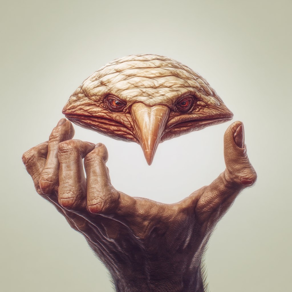 Создано на основе запроса: human hand and fingers shaped obese bird