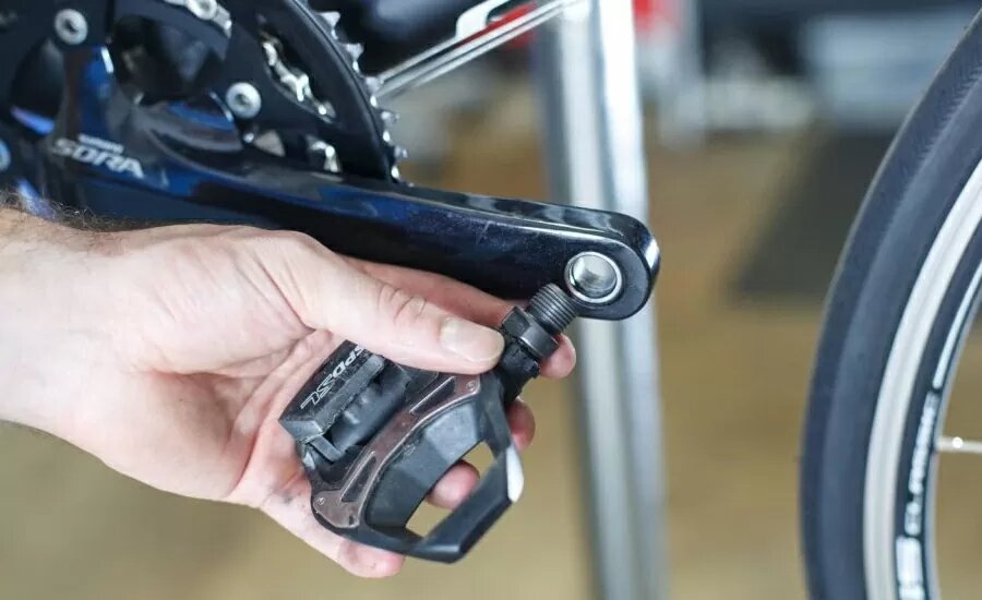 - Открутите правую педаль по часовой стрелке, левую – против (левая педаль имеет обратную резьбу).