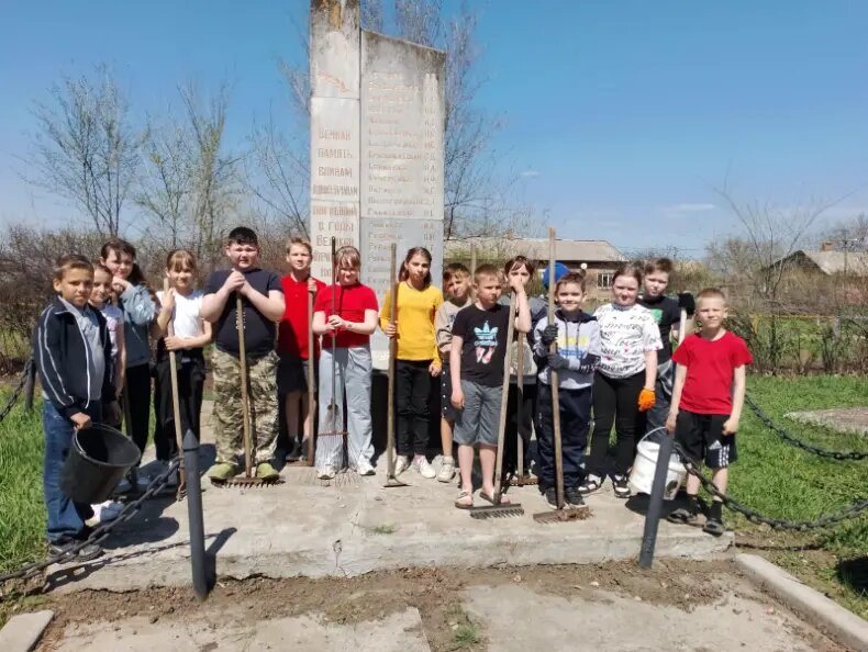 Учащиеся начальных классов Ново-Лакедемоновской средней школы во главе с преподавателями и работниками сельского Дома культуры провели субботник по благоустройству памятника «Погибшим в годы Великой Отечественной войны» и на прилегающей к нему территории. Напомним, с инициативой привести в порядок все памятные места в Ростовской области, посвященные героям Великой Отечественной войны, выступил глава донского региона Юрий Слюсарь. Он предложил принять участие в акции не только волонтерам, которые этим занимаются ежегодно, но и всем желающим жителям региона.
