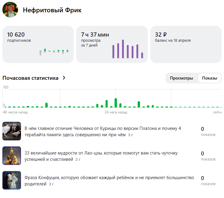 — А ты, как и я, — начни писать статьи, — со смехом произнёс Автор-писака, — только не думай, что на этом ты что-то заработаешь. И если уж по честноку, то как только Дзен сделал ставку на вашего брата, у меня рухнули: показы, дочитки, доход, и стали убегать подписчики. А с 14 апреля так и вовсе всё загнулось. Теперь, когда Дзен стал вновь ориентироваться на текстовый формат, авторы лишились последнего заработка. Добро пожаловать в наши ряды!