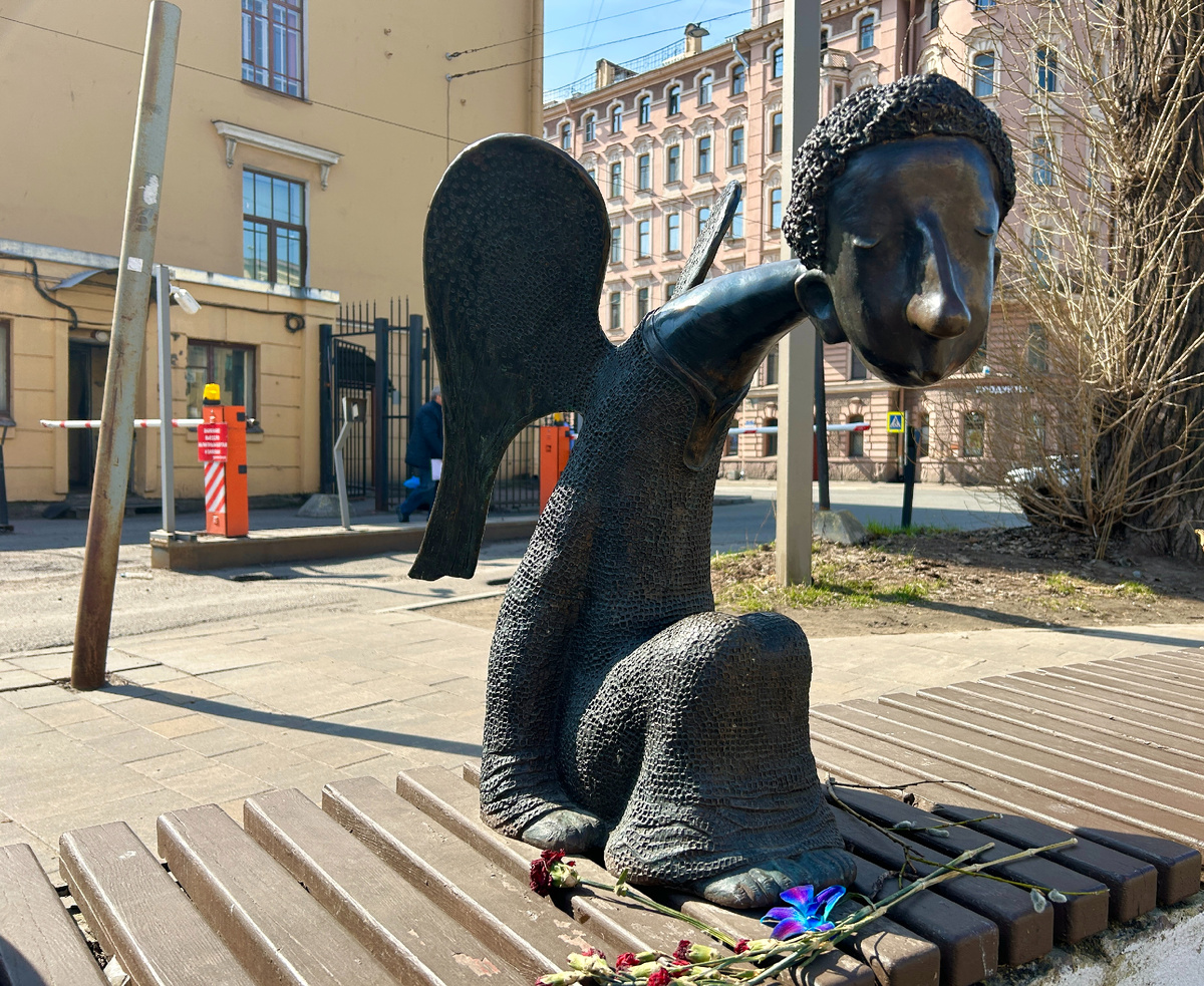 На самом деле это Памятник погибшим от коронавируса медикам (Яндекс Карты находят его под таким названием). Он очарователен! Грустный малыш-ангел – еще одно творение петербургского художника Романа Шустрова (о другой шедевре мастера – «Петербургском ангеле» - читайте здесь). Печально, что сам творец умер в 2020 году от той же напасти - COVID-19, а этот памятник дорабатывала и открывала уже его вдова. Плачущий ангел разместился напротив Первого Санкт-Петербургского государственного медицинского университета им. Павлова.