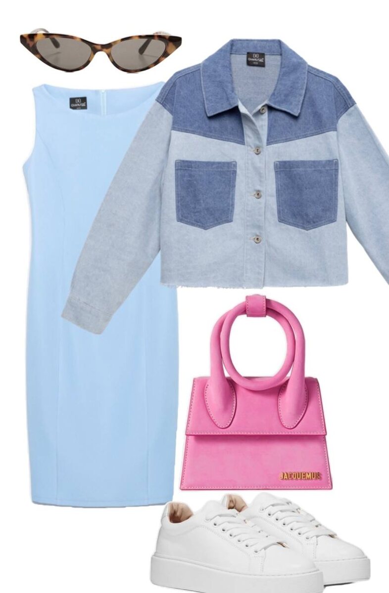Платье футляр только в офис? Клише! Берем платье небесно-голубого цвета - 1850Р Джинсовую рубашку - 1590Р Белые кеды и любимую яркую сумку😍 Мы готовы покорять этот мир❤️