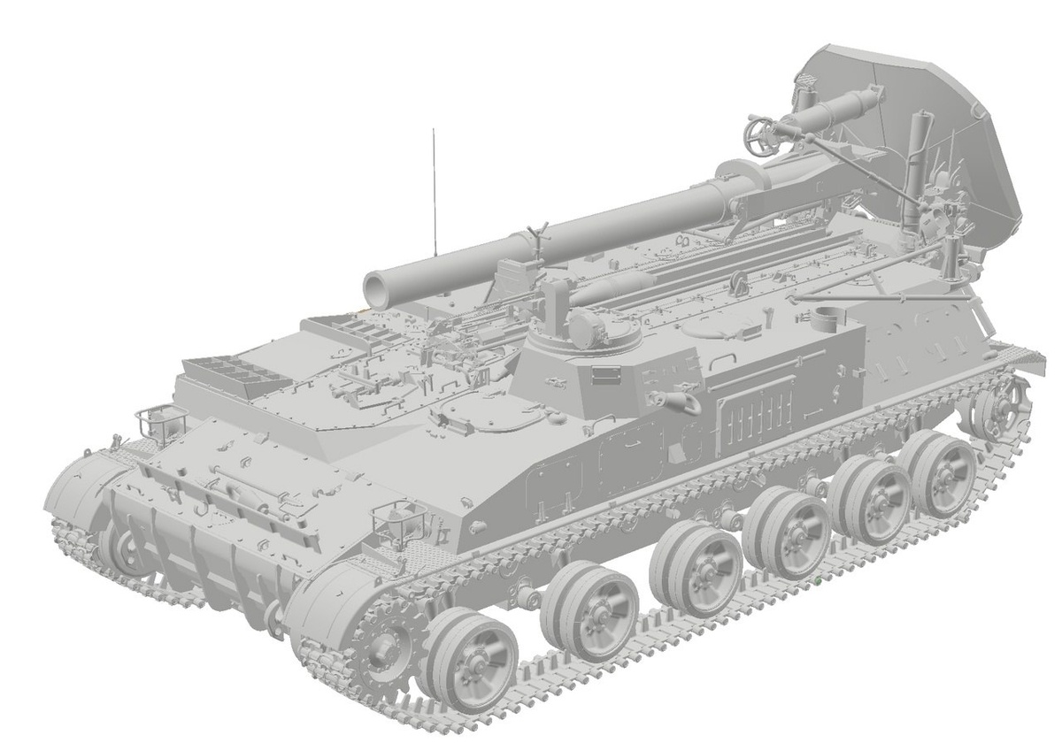 GE Models из подмосковного Одинцово показала рендеры своей будущей модели самоходного миномета 2С4 "Тюльпан" в масштабе 1/35, которая будет выпущена на 3D-принтере. Ствол будет металлический, модель предполагается возможным собирать в боевом или транспортном положениях.