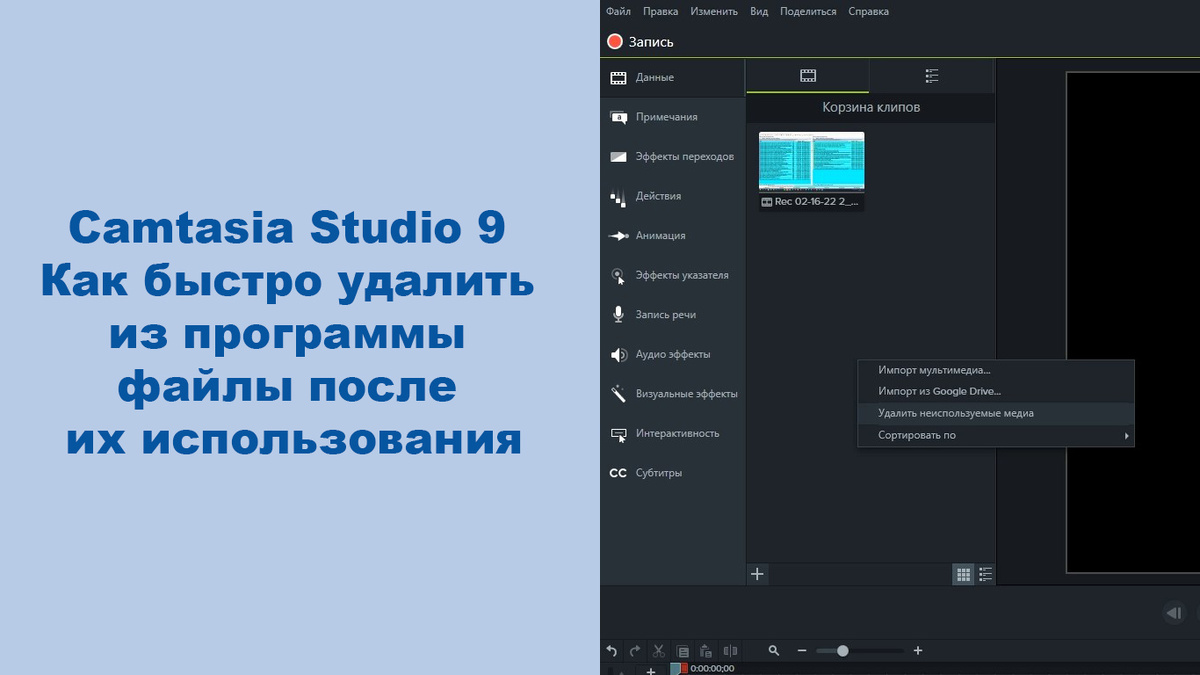 Camtasia Studio 9. Как быстро удалить из программы файлы после их использования