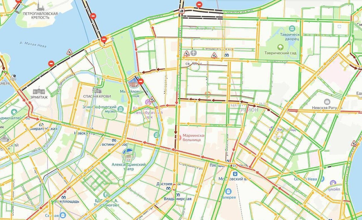 ⚠️Центр Петербурга парализован пробками с утра из-за перекрытий