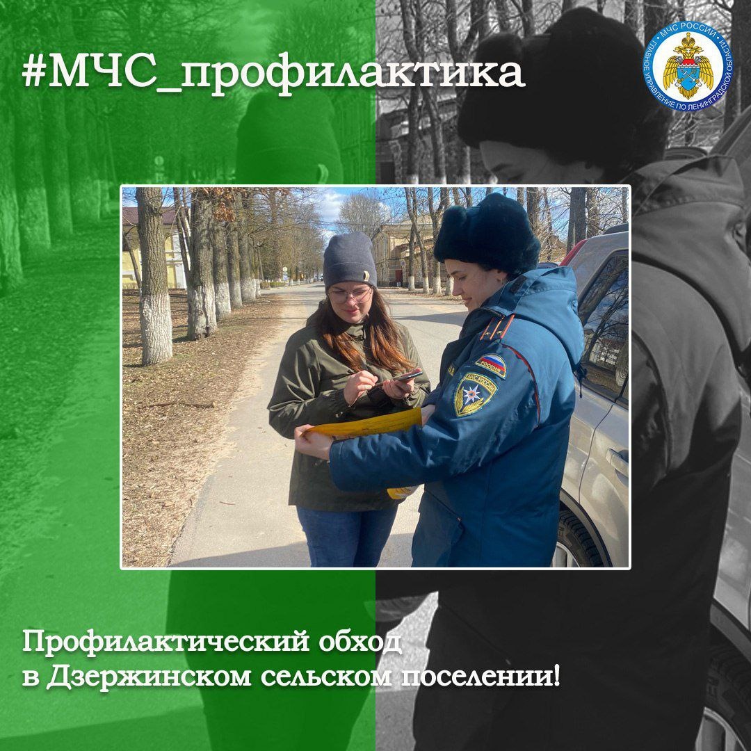 ПРОФИЛАКТИЧЕСКИЙ ОБХОД 🔸 Сотрудник ОНД и ПР Лужского района провела профилактический обход в Дзержинском сельском поселении. 🔹 В ходе профилактического мероприятия сотрудник чрезвычайного ведомства напомнила гражданам правила безопасности в весенне-летний период. 🧯 Гражданам вручили памятки по пожарной безопасности с действиями в случае возникновения пожара и номерами экстренных служб. Кроме того, сотрудник МЧС России напомнила населению о важности нахождения на участке первичных средств пожаротушения. #МЧС_профилактика МЧС Ленинградской области