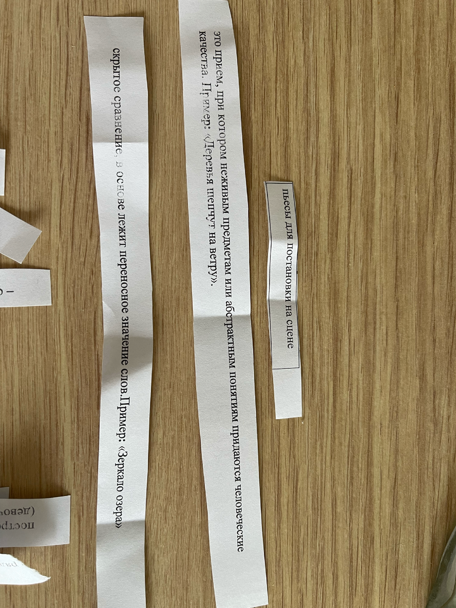 ВПР становился все ближе и ближе. Стали думать, как же там будут даны задания. А в задании оказывается будет указано просто описание термина, и надо угадать что это. И мне пришла в голову гениальная идея. Я еще раз открыла перечень определений на компьютере, подредактировала, убрав сами названия, оставив только описания, распечатала, нарезала на полоски все термины. Взяла коробку и положила туда карточки.