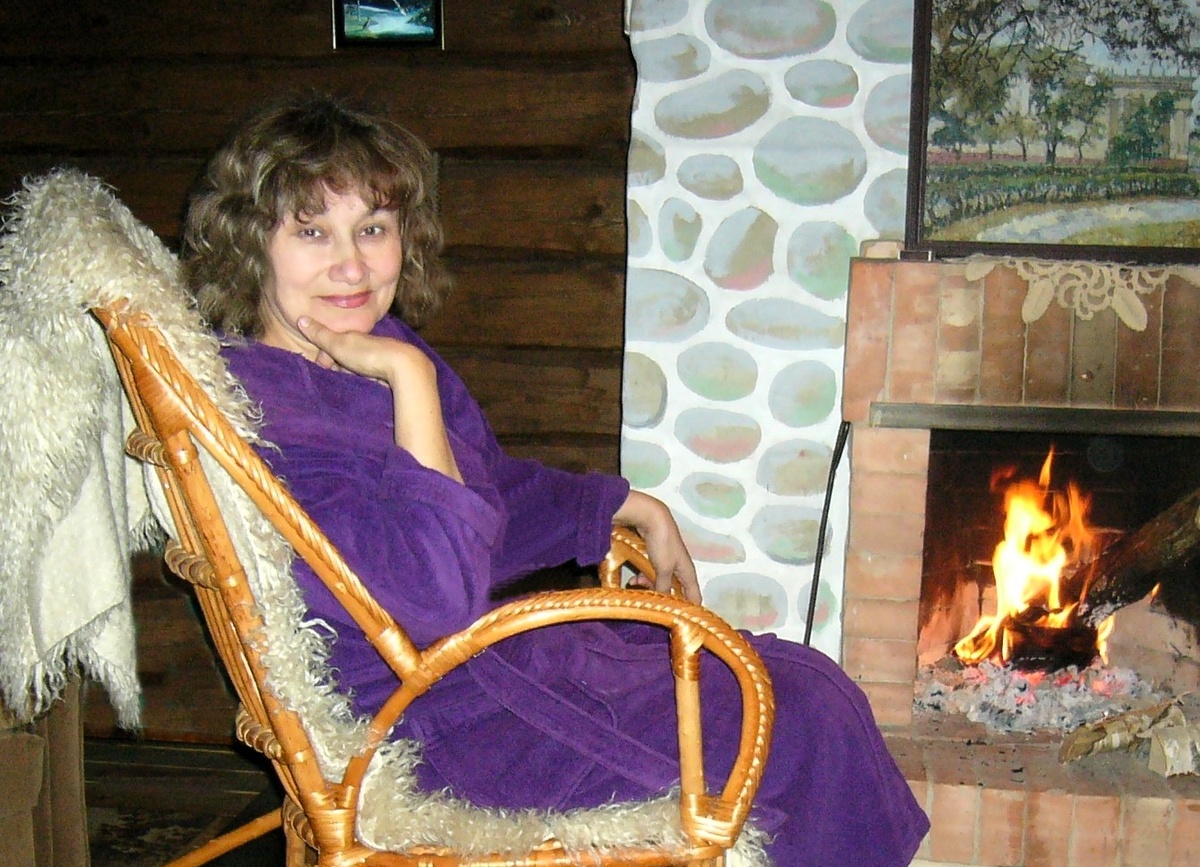 Всё-таки здорово, что сгруппировалась, вырвала, как Мюнхгаузен, сама себя из топкого болота полудрёмы-полубреда, вытащила расквасившееся тело из душных одеял, влезла под душ, под фен, в джинсы, в свитер… И прикатила на дачу. Здесь болеть легче, да и приятнее намного. Холодно, как и в Москве, зато воздух, звеняще-прозрачный, шедро приправленный елово-берёзовой терпко-сладостью, - такой, что черпай пригоршнями и пей, пей, пей… Но сегодня его передозировка мне вредна – уж очень прохладный, а сейчас, поздним вечером, даже студёный. У меня температура глючит: градусник то жалобно запищит, замерев на 39 и 2, то испуганно заверещит, застряв на 35 и 6. Вот поэтому, закутанная в махрово-мехово-пуховый кокон, сижу у жарко пылающего камина, чуть покачиваюсь в плетеном кресле и смотрю на пламя. Тоже здорово! Огонь с шипением обнимает и обволакивает полешки, и они довольно потрескивают – совсем как в детстве. В далёком деревенском детстве. Я знаю место, где всегда тепло.