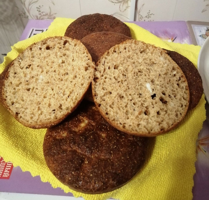 ✔ Творог (1% или 5%) - 180 г; ✔ Яйца – 3 шт.; ✔ 10 г разрыхлителя; ✔ Мука спельты - 100 г; ✔ Соль - по вкусу. Все ингредиенты соединить, Если муки спельты нет, можно использовать овсяную Вымесить тесто, выложить в виде лепёшек на застеленный пергаментом противень. И в разогретую до 190 градусов духовку на 20 минут (но всё таки за готовностью следим по своей духовке). У меня получилось 7 «краюшек». Изначально на одну лепёшку теста было по 70 г. В готовом виде одна лепёшка - 54 г. КБЖУ на 100 г (творог 1%, мука спельты) – 166/13,2/4,5/17,2. А если из овсяной муки, то КБЖУ на 100 г – 175/13,4/5,7/15,6. Рецепт на странице Автор рецепта – Татьяна Симакова Расчёт КБЖУ сделан с помощью Telegram-чат-бота https://t.me/vesipitaniebot © Почтенный возраст Online и Рецепты для диабетиков