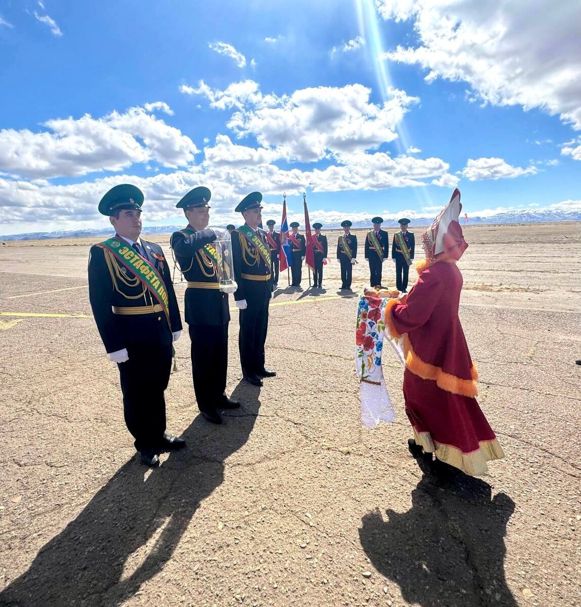 17 апреля алтайские пограничники приняли Эстафету Победы на территории Кош-Агачского района Республики Алтай от тувинских военнослужащих. Международная военно-патриотическая акция стартовала 2 февраля в двух местах одновременно: в российском Мурманске и белорусском Бресте. Эстафета приурочена к 80-летию Победы советского народа в Великой Отечественной войне. Акция призвана сохранить историческую память о подвиге наших предшественников, не допустить фальсификации, искажения и пересмотра его итогов, а также укрепить дружбу и доверительные взаимоотношения между народами государств Содружества. Эстафета проходит вдоль государственных границ девяти стран, в общей сложности свыше 60 тысяч километров, и 28 мая 2025 года в День пограничника финиширует торжественными мероприятиями в городе-герое Москве. На торжественном митинге по передаче Эстафеты Победы в Кош-Агаче участвовали сотрудники пограничных управлений, представители администрации, ветераны-пограничники, отряд «Юные друзья погранич