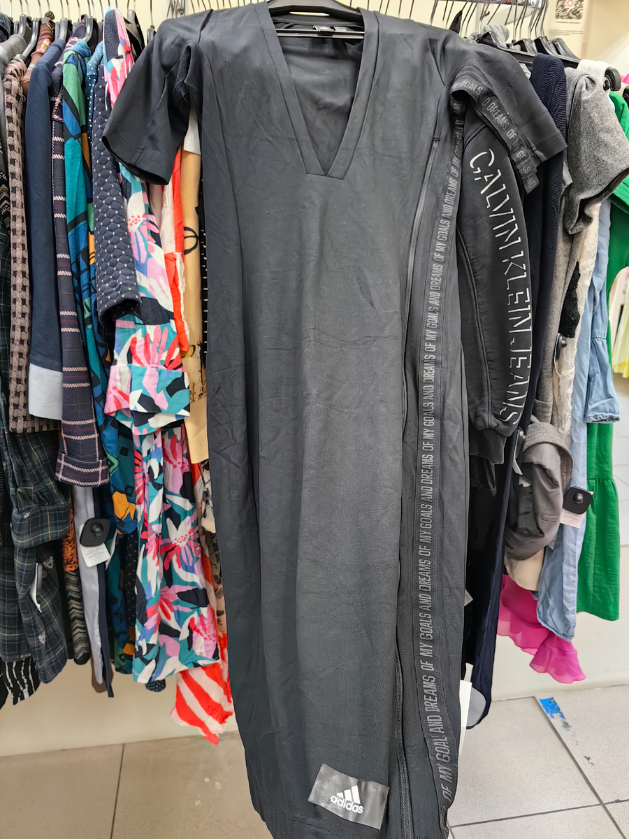 Добрый день, меня зовут Тоня и сегодня я расскажу вам, что можно увидеть в секонде в день фиксированной цены - 350 рублей. На днях я уже выкладывала статью о посещении одного магазина, сегодня расскажу о втором магазине. Здесь намного меньше осталось интересного, но я все же что-то увидела и даже купила для себя. А еще мы увидим старого знакомого, который очень изменился за это время, и не в лучшую сторону, к сожалению. Начнём! Длинное хлопковое платье от адидас, оригинал, с действующей молнией от подола до подмышки😁 В хорошем состоянии, удивительно, что довисело до этой скидки. Это платье мне очень понравилось принтом, зебры очаровательные, взяла его в примерочную. Остатки зимнего ассортимента, свитер из мохера - 80%. Очень приятный, лохматенький) бренд недорогой, свитер в хорошем состоянии. Такой свитер деда) Это платье из модала понравилось, тактильно модал очень приятный, сшито оно отлично. Черный вставки это не принт, это ткань вшита другого цвета. Стильное. Большой разме