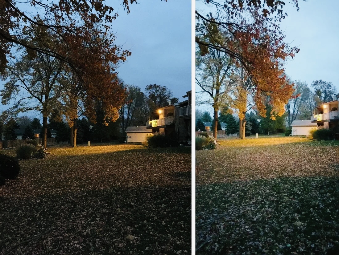 - Динамический диапазон: оба справились, но у Apple чуть больше деталей в тенях.