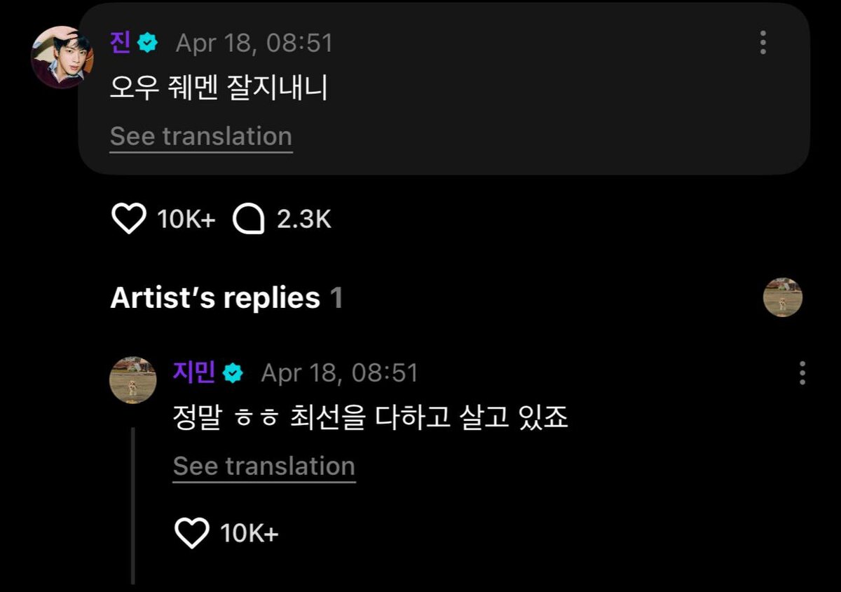 🍀 Чимин на Weverse ответил Джину: