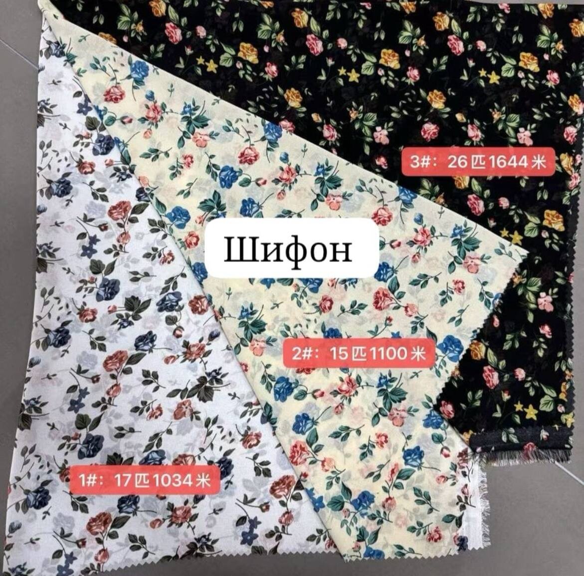 Шифон принт Ширина 150 см В рулоне от 70 м Оптом от 1 рулона 1.5$/м