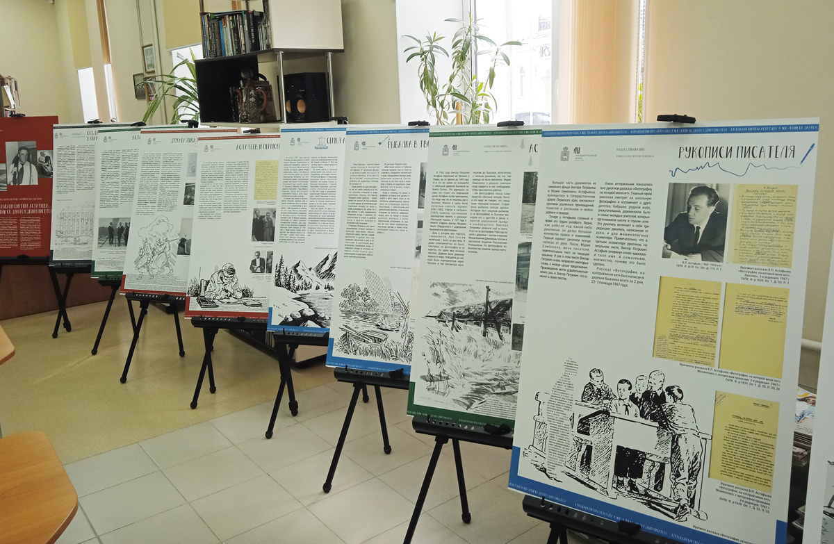 Историко-литературная и документальная выставка «Открывая Виктора Астафьева» действует в Библиогалерее на Киттарской - библиотеке № 6. Выставка основана на материалах из Государственного архива Пермского края, а подготовлена школьниками. В Прикамье хранится фонд прозаика, в котором более 1,5 тысячи единиц: рукописи, личные и семейные документы, переписка, фотоснимки. Ещё в середине 1970-х годов Виктор Петрович Астафьев начал отправлять свои бумаги в Пермь по просьбе руководства Госархива. После кончины писателя это продолжала делать его вдова Мария Семёновна, она передавала его документы до 2007 года. Поэтому именно в Перми - богатый архив классика. - Интересно, что отбор материалов для стендов выставки осуществили пермские школьники, которые занимаются в «Архивной лаборатории» при Госархиве, - отмечает заведующая библиотекой № 6 Марина Боброва. Одиннадцать стендов выставки «Открывая Астафьева» рассказывают о разных периодах жизни и творчества писателя, темы разнообразные: «Жизнь Астаф