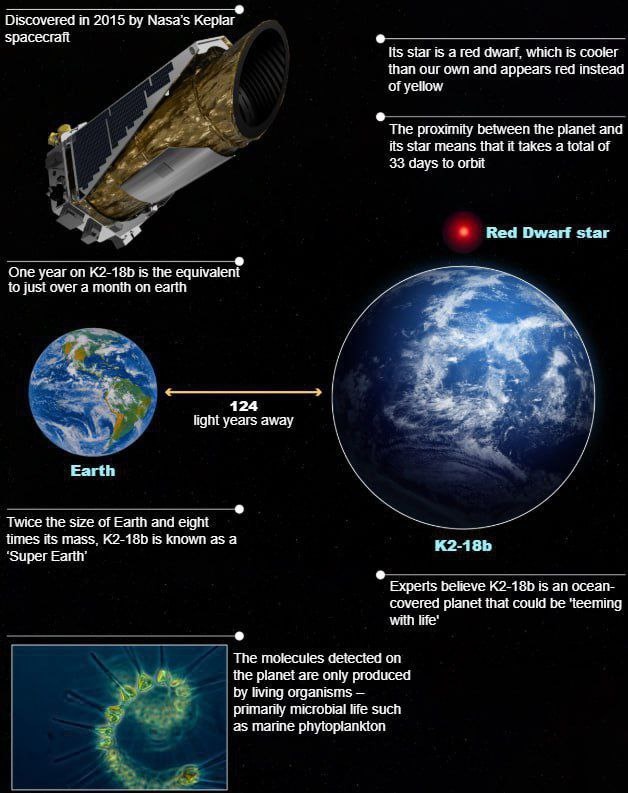 Учёные из Кембриджского университета сделали захватывающее открытие: признаки жизни были обнаружены на экзопланете K2-18b, находящейся в 124 световых годах от Земли. С использованием космического телескопа «Джеймс Уэбб», исследователи выявили в атмосфере этой планеты диметилсульфид и диметилдисульфид — химические соединения, которые на Земле производят исключительно живые организмы. Специалисты предполагают, что поверхность K2-18b может быть покрыта океаном, а температурные условия на планете аналогичны земным. Ранее на этой экзопланете также были зафиксированы углекислый газ и метан. 👉 Ядро событий 18+🔥