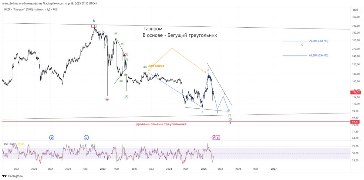Газпром - пока вниз структура не завершена, для разворота необходимо завершить КД в волне (с) of [y] of c треугольника