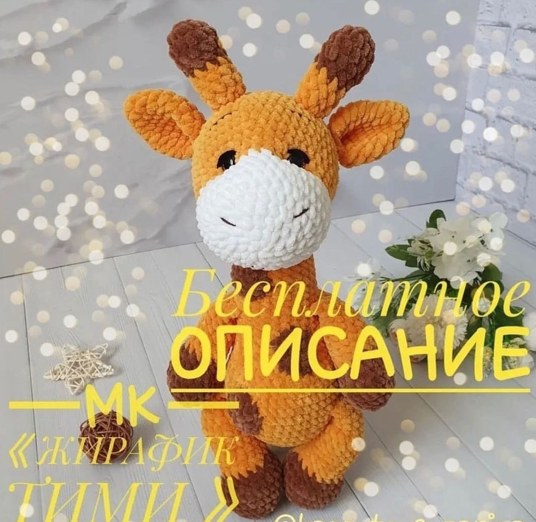 Сегодня поделюсь с вами описанием как связать жирафика из плюшевой пряжи.