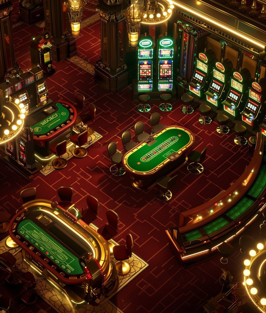 Создано на основе запроса: Macau casino interior, 3D isometric view, 45-degree angle, featuring a cluster of 6 slot machines with vibrant