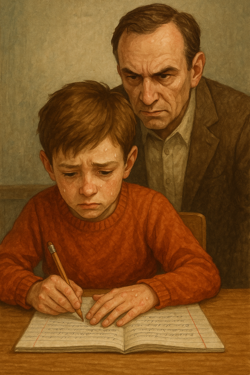 У Артёма снова дрожали пальцы, когда он открывал тетрадь. Страницы были заляпаны потом, хотя он аккуратно мыл руки перед уроком. Почерк — как будто не его. Он писал, как робот, боясь криво повести букву. Он знал, что одна ошибка — и будет тот взгляд.