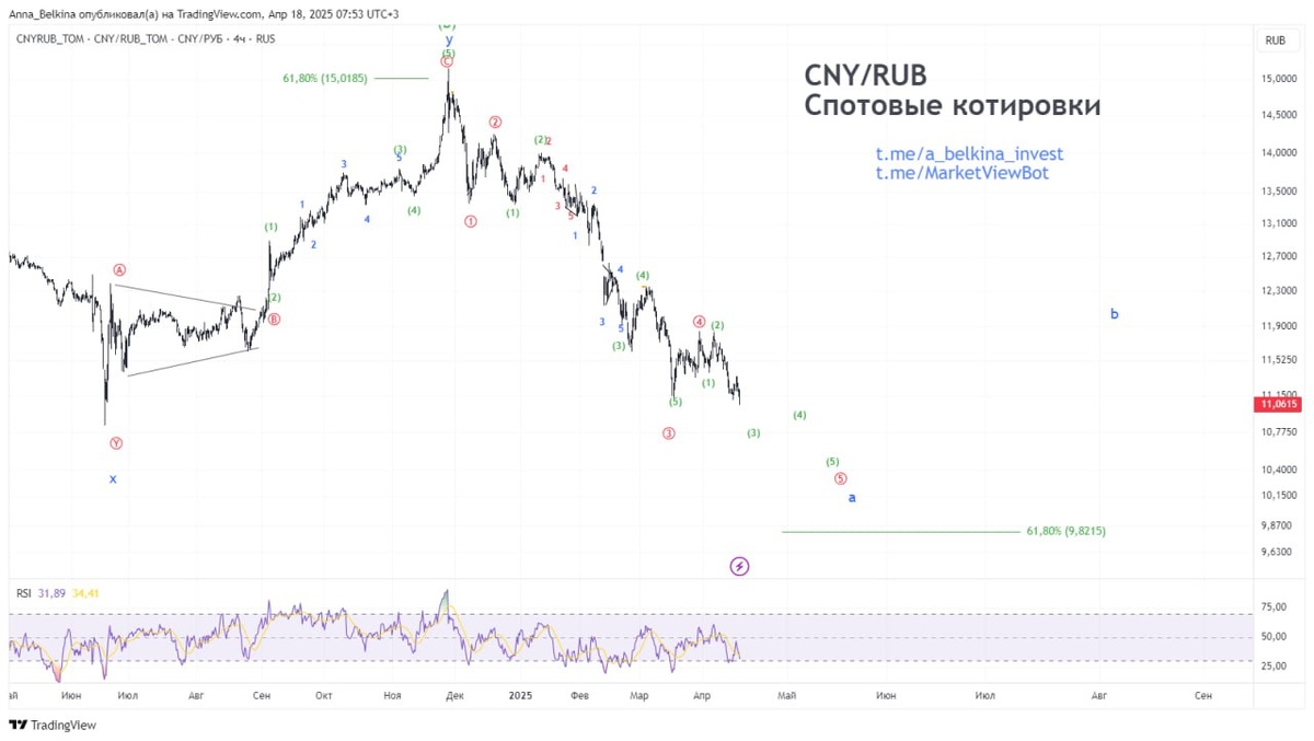 А вот по паре юань-рубль волна (4) of [5] of (a) уже завершена, укрепление рубля идет дальше.