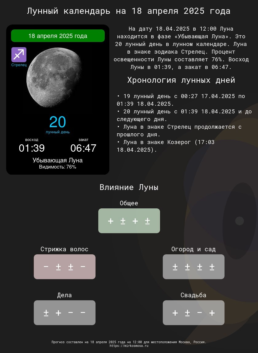 🔹🌗 Лунный календарь на 18 апреля 2025 года — Что приготовила Луна? Подробнее