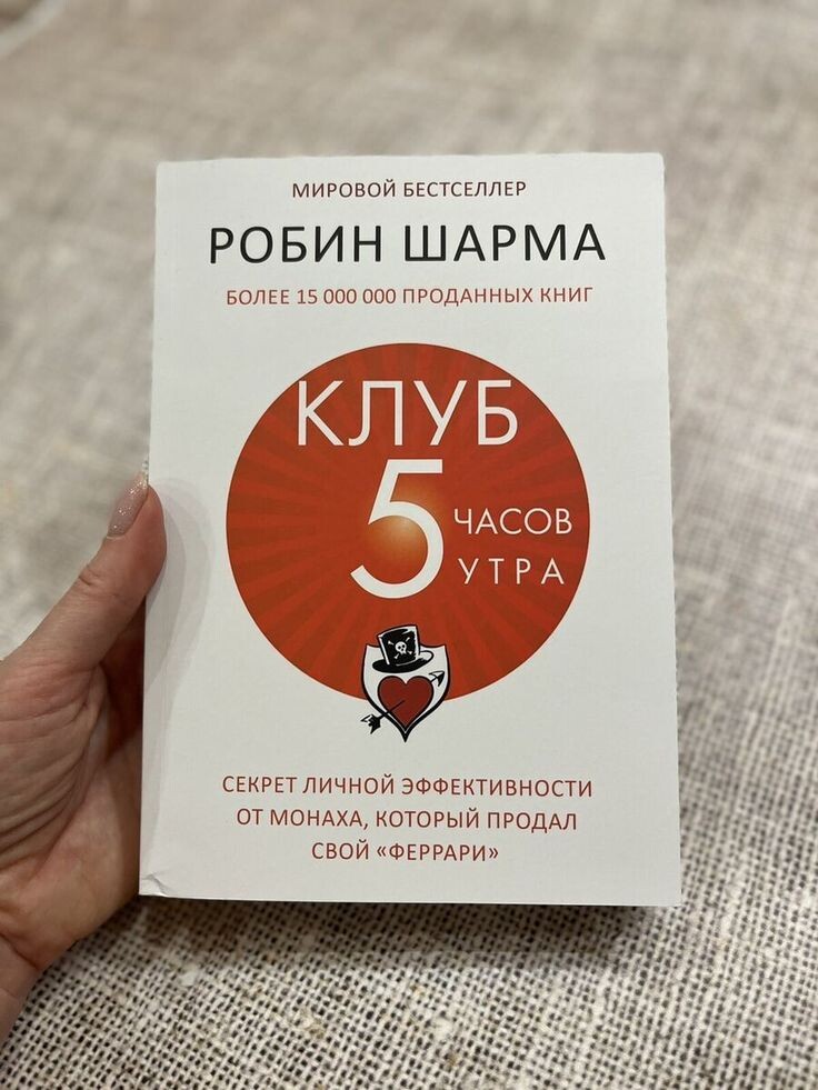 Книга «Клуб 5 часов утра» Робина Шармы вышла в 2018 году и быстро стала бестселлером. В ней автор рассказывает историю предпринимателя, который, оказавшись на грани краха, встречает необычного наставника. Этот человек раскрывает ему секрет успеха — систему ранних подъемов и утренних ритуалов.