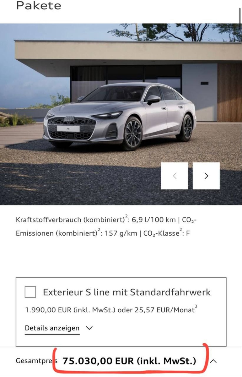 Германия: Новый А6 с разгоном 4.7сек - 75 000 евро. Denza Z9 - 100 000 евро (из-за пошлин) в Китае он стоит 51 000 евро. _ Никак BYD не сможет продавать в ЕС пока не запустится завод в Венгрии и не появятся цены как в Китае. Никто не купит Дензу вместо этой А6 доплатив еще 30к сверху. Даже при том, что она в отделке салона и технологиях сильно проигрывает