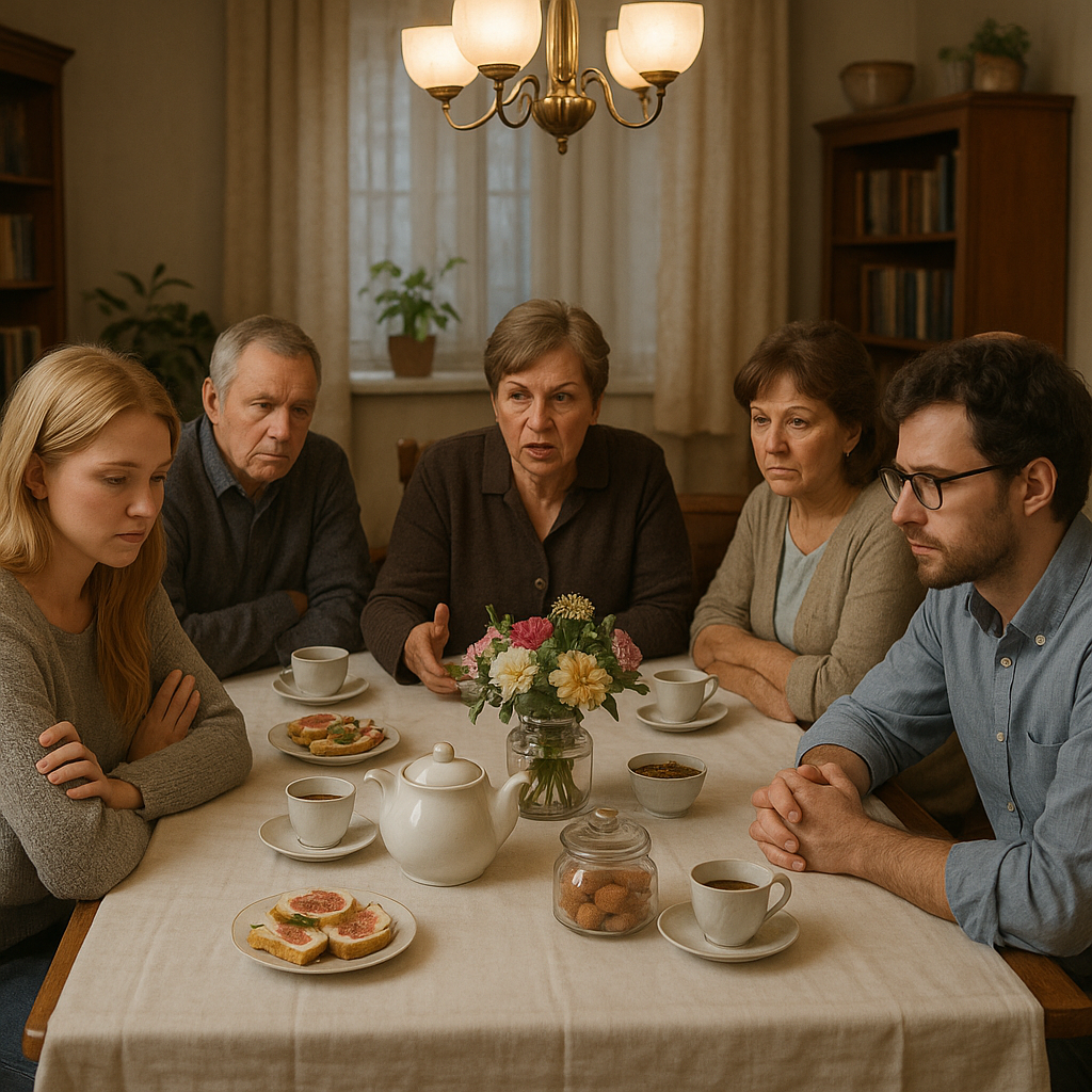 Через три дня обе семьи договорились встретиться у Ольгиных родителей, чтобы «всё обсудить». Ольга не хотела этой встречи, чувствуя, что разговор превратится в суд, но Светлана Ивановна настояла: «Ты не ребёнок, Оля, хватит бегать. Мы разберёмся». Максим тоже был не в восторге, но Елена Николаевна убедила его: «Если любишь её, сын, сиди и слушай, даже если будет тяжело».