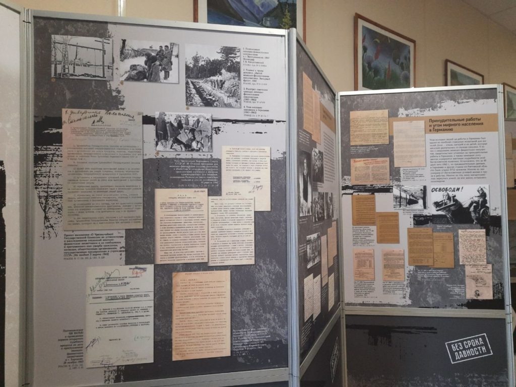 В центральной городской библиотеке имени Шолохова города Зверево оформлена передвижная выставка «Без срока давности». На выставке представлены материалы, посвященные героизму красноармейцев и трудовым подвигам тружеников тыла, зверствам фашистов и массовым расстрелам мирных жителей, военнопленных, партизан и подпольщиков Ростовской области. Особое место на выставке уделено материалам, посвященным преступлениям нацистов против детей, принудительным работам и угону мирных жителей в Германию, массовым расстрелам дончан в Змиевской балке в Ростове-на-Дону и на шахте имени Красина в Шахтах. Выставка экспонируется до 30 апреля. В Ростовской области мобильная выставка с материалами федерального проекта «Без срока давности» стала традиционной. Организаторы передвижной выставки «Без срока давности» — региональный комитет по молодежной политике и «Ростовпатриотцентр», сообщается на официальном сайте донского правительства. Цель выставки – сохранение исторической правды о Великой Отечественной во