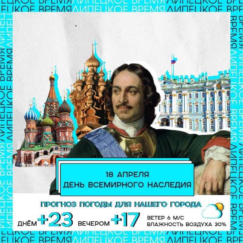 🗿Сегодня, 18 апреля, отмечается Международный день памятников и исторических мест, также известный как День всемирного наследия. Его цель — привлечь внимание к сохранению культурного и природного наследия по всему миру. 🇷🇺Россия гордится 32 объектами, включёнными в Список всемирного наследия ЮНЕСКО. Среди них — озеро Байкал, самое глубокое пресноводное озеро на планете, и исторический центр Санкт-Петербурга, признанный одним из самых красивых городов мира. 🌤️Что касается погоды, сегодня в Липецке облачно. Температура воздуха составит около 22 °C.