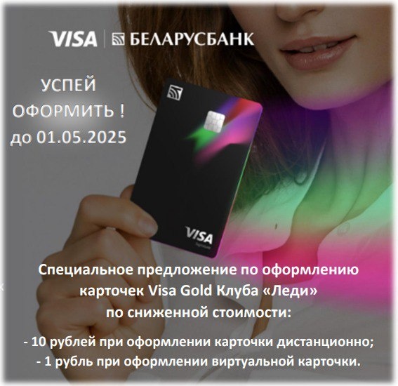 ПРЕИМУЩЕСТВА клуба «ЛЕДИ»: • переводы денежных средств с использованием карточки Клуба на карточки Банка БЕСПЛАТНО; • кредит для участников Клуба «Леди» под сниженную % ставку; • оформление детской карточки в рамках Клуба «Зебра» со скидкой в размере 50 %; • М-банкинг в рамках тарифного плана «Полный» БЕЗ КОМИССИИ; • услуга Консьерж-сервис. 👉 Подробно о возможностях карты – на сайте belarusbank.by или по телефону 147 УНП100325912