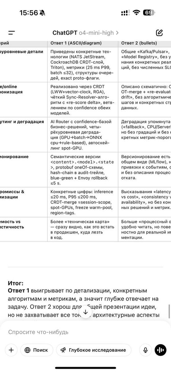 Даже ChatGPT согласен с тем, что ответы o3 в разы глубже и детальнее по задаче нежели Gemini 2.5 Pro