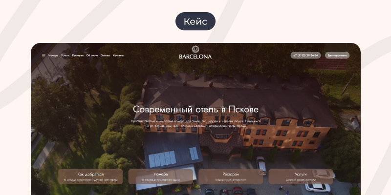 Отель «Барселона» в Пскове предлагает гостям комфортные номера разных категорий и собственный ресторан «Siesta». Агентство CoffeeStudio давно сотрудничает с этим клиентом, осуществляя техническую поддержку сайта и рекламные кампании.