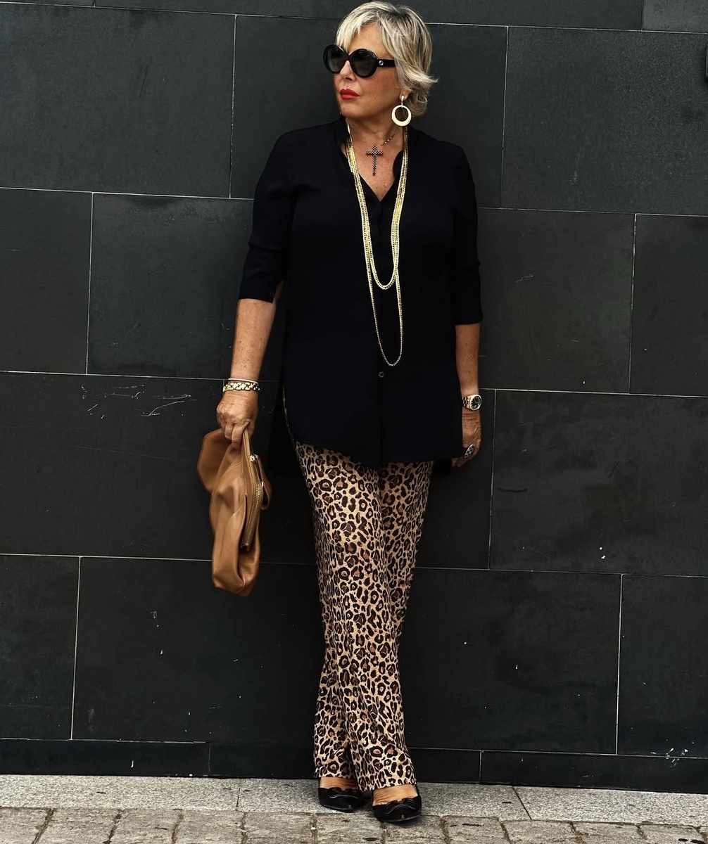 Возраст вовсе не помеха для стильных образов. После 60-ти лет многие делают ставку на удобство и простоту. Сегодня рассмотрим несколько примеров комфортных, но в тоже время невероятно красивых нарядов, которые сможет повторить каждая из вас 🌺 Посмотрите какая простая, но эффектная комбинация! Брюки с принтом сделают любой образ интереснее и никак не скажутся на удобстве, поэтому стилисты рекомендуют каждой иметь их в своем арсенале. Чтобы образ не был перегруженным, в верхней части базовая черная блуза, она сочетается по цвету с принтом брюк. Шика и элегантности добавлять аксессуары, без них никуда. Многие дамы игнорируют белые брюки, и очень напрасно! Белый цвет освежает, молодит и смотрится очень нежно. Светлые брюки могут стать отлично альтернативой скучным джинсам, с ними даже самый простой наряд станет в разы интереснее. Модель классического фасона можно надеть и на деловую встречу, и на праздник, и на каждый день. Вы когда-нибудь задумывались о том, как чудесно было бы вернутьс