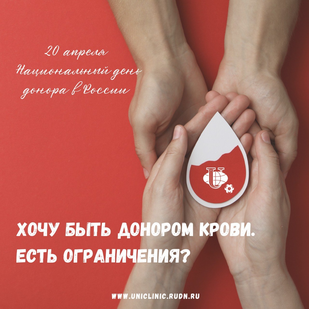 Хочу быть донором крови. Есть ограничения?🩸 20 апреля отмечается Национальный день донора в России. Быть донором крови – это почетно. Сотни людей ежедневно нуждаются в переливании крови в результате аварий и травм, из-за операций или заболеваний. Стать донором может совершеннолетний здоровый человек без хронических и инфекционных заболеваний. В противном случае, такая кровь может стать смертельно опасна для реципиента (кому эту кровь переливают). 🩸 Ограничения и запреты 🩸Беременность 🩸Перенесённый грипп, ОРВИ (ограничения для сдачи до 30 дней) 🩸Инфекционные заболевания (ограничения до 3 месяцев) 🩸Острый период аллергии (ограничение до 2 месяцев) 🩸Прием лекарств (ограничения от 3 дней до 2 недель) 🩸Вакцинация (необходимо проконсультироваться со специалистом; ограничения могут быть до 1 года) 🩸Вмешательство: операция, татуировки, пирсинг, косметологические инъекции ботокса, гиалуроновой кислоты, введение филлеров (ограничения до 120 дней) 🩸Онкология (запрет на донорство) 🩸