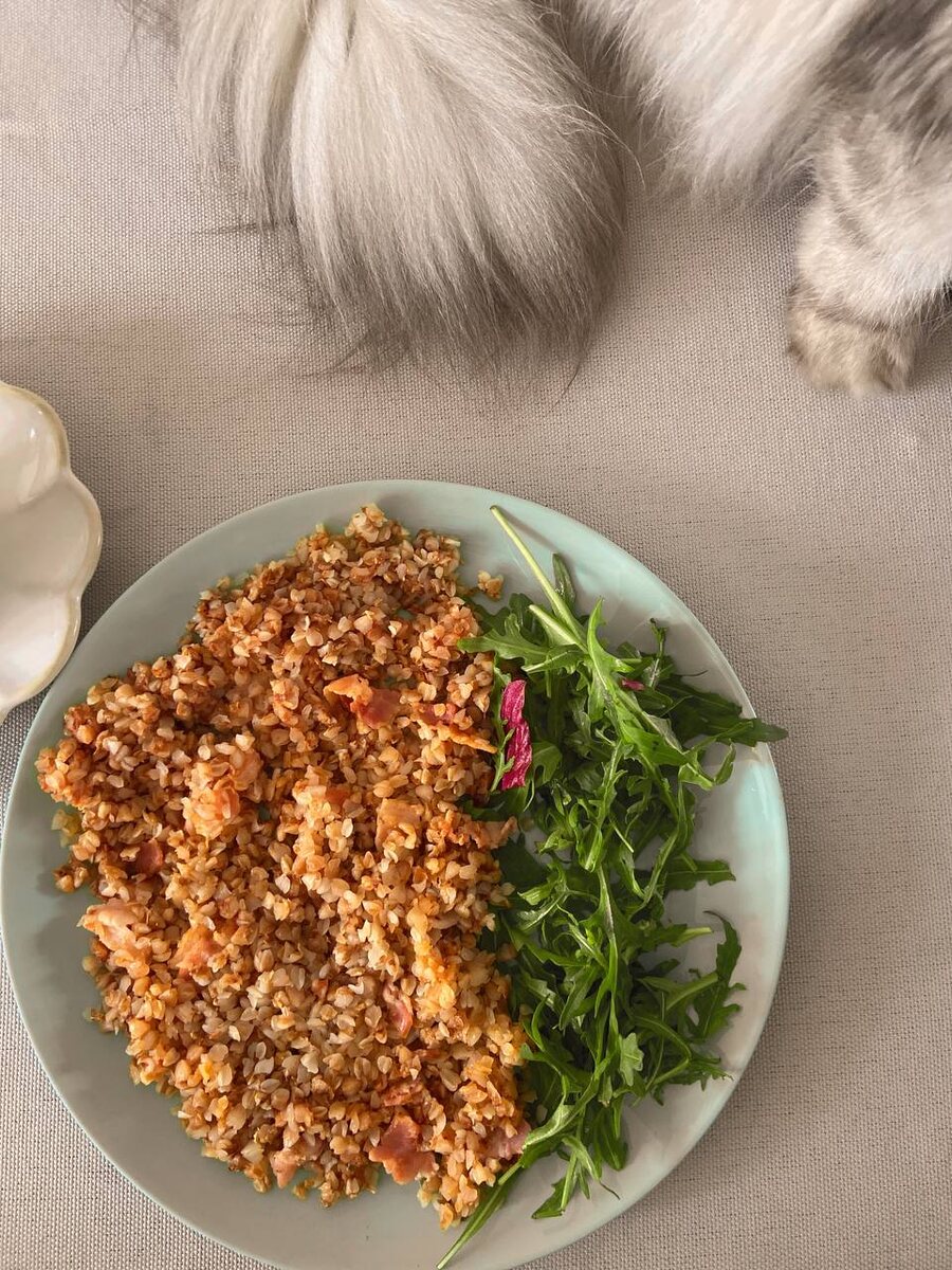 День 2. #отчетпопривычкам Девчонки, второй день моего марафона – полёт нормальный! 🚀 Ну, почти 😂Питание держу, хотя соблазны, как мухи на мёд, липнут! Фото обеда, увы, нет – в борьбе с морковкой и куриной котлетой было не до фотосессий. Итак, меню дня: Завтрак: Гречка с зеленью, поджаренная на беконе с томатным соусом. Обед: Морковка с чесноком и пюре с куриной котлетой. Ужин: Куриные бедра по-грузински, салат и рис без всего. Гарнира я съела меньше, чем на фото. 😉 Спорт тоже был! 💪 Целых 30 минут! Правда, после вируса сил маловато, но я не сдаюсь! Зато пью, как слон! 🐘 Больше двух литров воды точно ушло. Видимо, организм требует воды после героических тренировок. 😂 Спала как младенец! Легла до 23:00 – вот он, секрет красоты и бодрости! ✨ Продолжаем наблюдение! 🧐 #ПолезныеПривычки