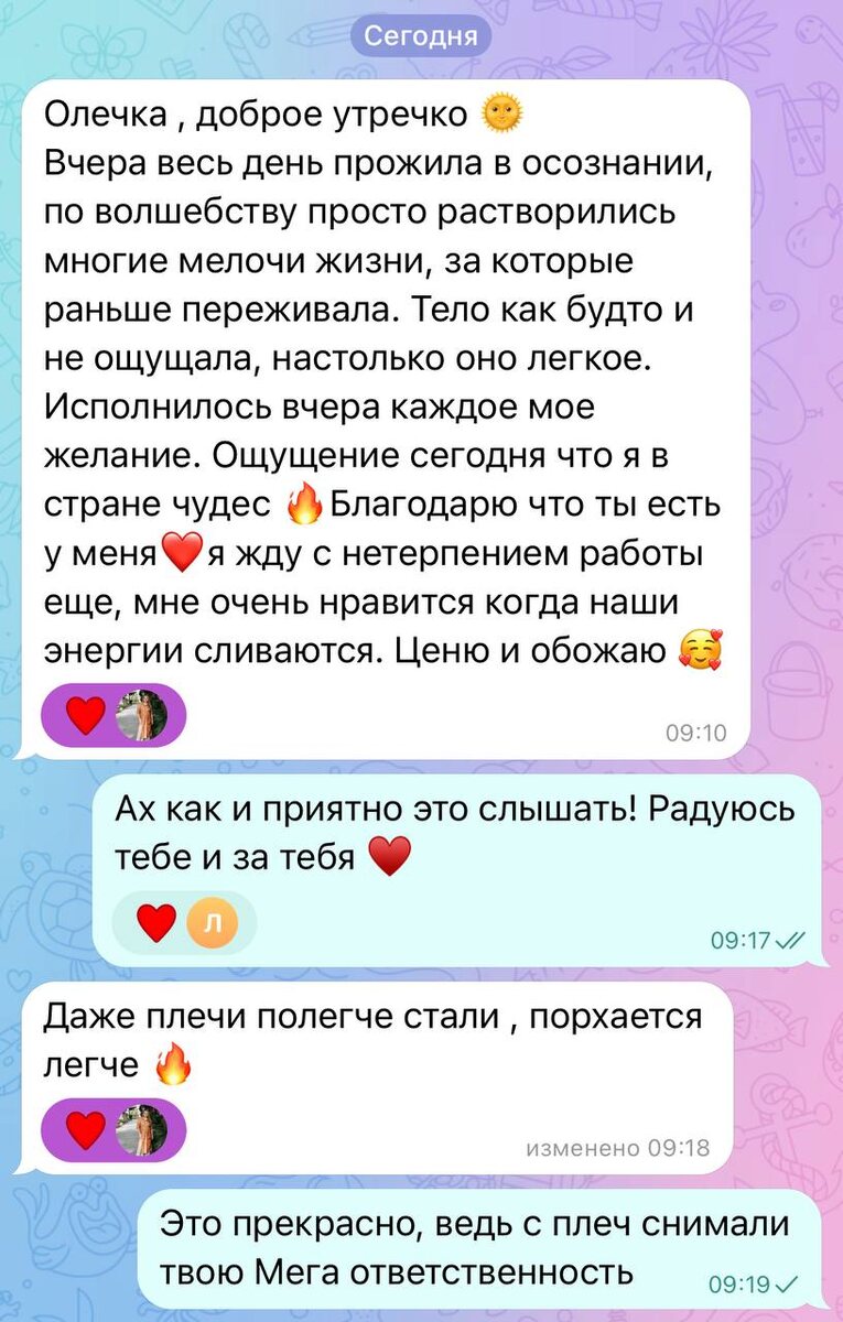 У меня тоже порой в гости приходит внутренний критик. Говорит мне: «Кому это нужно?» Но, я умею чувствовать свое тело и говорить со своим внутренним критиком. И вот вчера он «пришел в гости», а сегодня утром получила несколько приятных отзывов (одним из них делюсь). С благодарностью сказала спасибо своему критику и своему телу и воодушевленная пошла работать ❤️ Прекрасной пятницы!