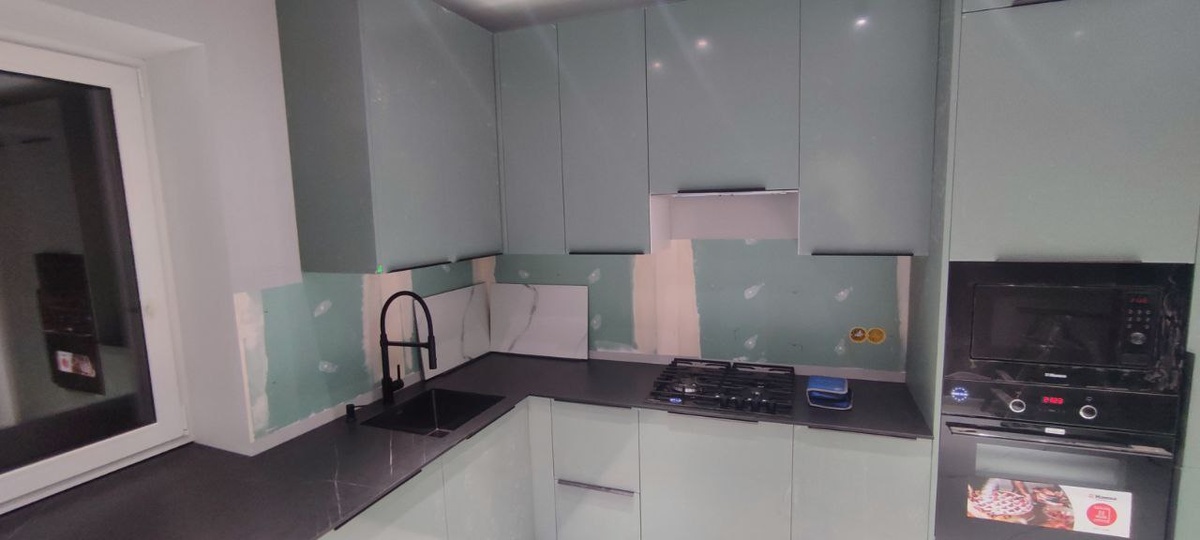 Заказчик попросил примерить плитку ,чтоб было представление будет этот смотреться или нет, но широкоформатную плитку надо подгонять плюс большой риск повредить мебель и технику