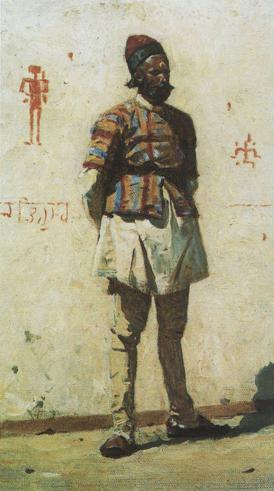 Картина «Индиец» (1873) принадлежит кисти знаменитого русского художника-реалиста Василия Васильевича Верещагина (1842–1904) и входит в серию его работ, созданных во время путешествия по Британской Индии в 1870-х годах.