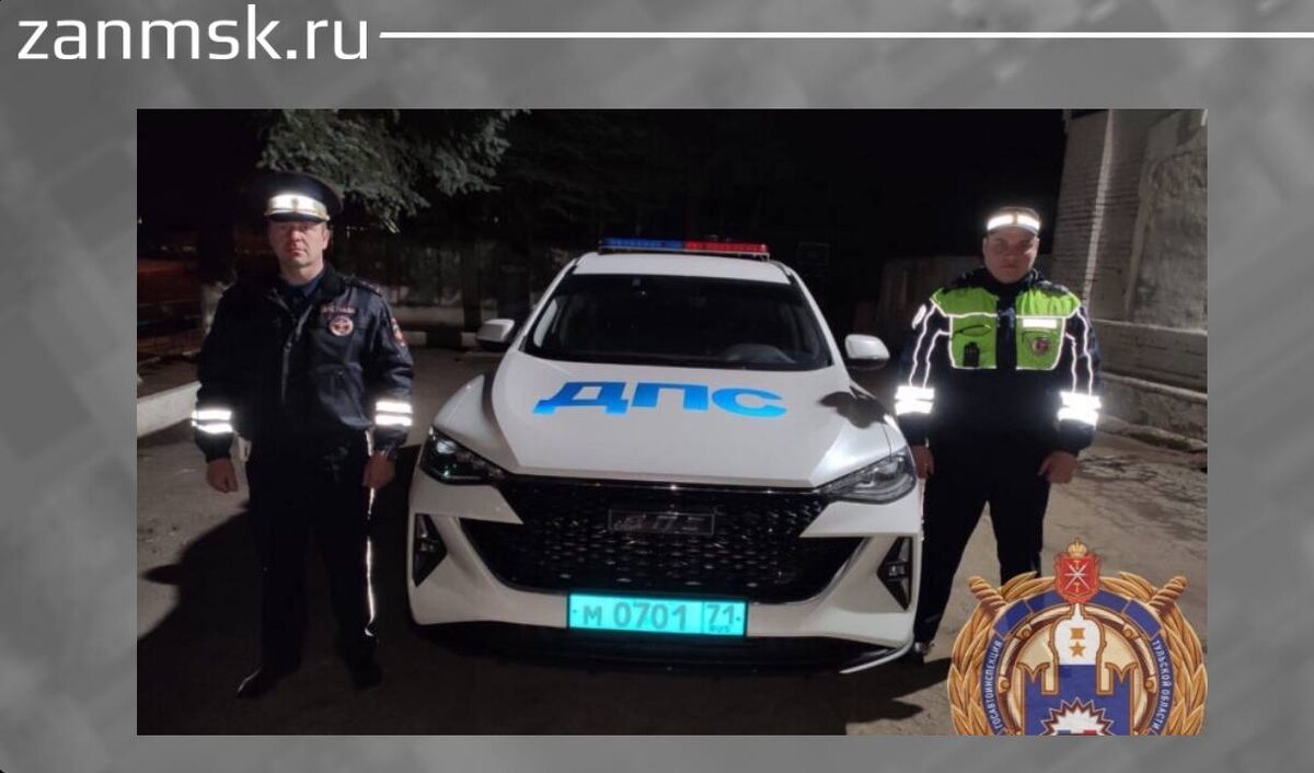👏В Кимовске сотрудники ДПС помогли автоледи ночью поменять колесо
