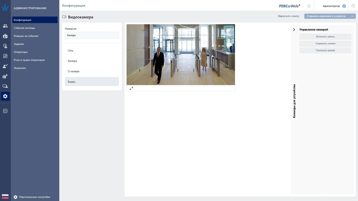 - Возможности интеграции системы PERCo-Web с биометрическими устройствами BioSmart и видеоподсистемой TRASSIR