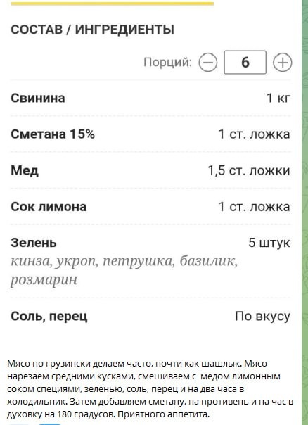 Мясо по грузински . Девочки пишут что не могут сохранить у себя этот рецепт из нашего чата , девочки можно из нашего канала в телеграм его к себе добавить , например в соц сети и не потеряете . НЕ ПУТАЙТЕ ЧАТ ЭТО ГДЕ МЫ С ВАМИ ОБЩАЕМСЯ , КАНАЛ ГДЕ Я ВСЕ ДЛЯ ВАС ЗАГРУЖАЮ И ОНО АВТОМАТОМ УХОДИТ К ВАМ В ЧАТ , ДЕЛИТСЯ МОЖНО ТОЛЬКО С КАНАЛА ТЕЛЕГРАМ