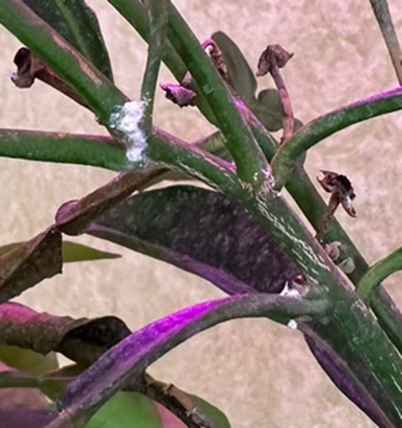 Своих врагов нужно знать в лицо, чтобы как можно раньше обнаружить и сразиться. Именно поэтому хочу рассказать свой опыт борьбы с мучнистым червецом. Все новые растения у меня проходят карантин и обработку, а этого паразита занесла в коллекцию с черенком ( теперь обязательно мою с мылом даже новый прививочный материал!) Но любая проблема только укрепляет, и я благодарна за опыт. Борьба была длительная, но я победила и делюсь с вами своим опытом. Белые ватные комочки в пазухах листа, белый налет на стеблях и листьях, липкие листья – это признаки заражения мучнистым червецом. Мучнистые червецы (Pseudococcidae), либо войлочники, либо ложноподушечницы являются насекомими из семейства полужесткокрылых, имеют характерный вид, в народе такое насекомое еще именуют «мохнатыми вшами». Опасность для растения в том, что мучнистый червец является сокососущим, повреждает ткани растения и тормозит рост. Выделяет специфический липкий секрет, на котором могут расти сажистые грибки. В моей цитрусов